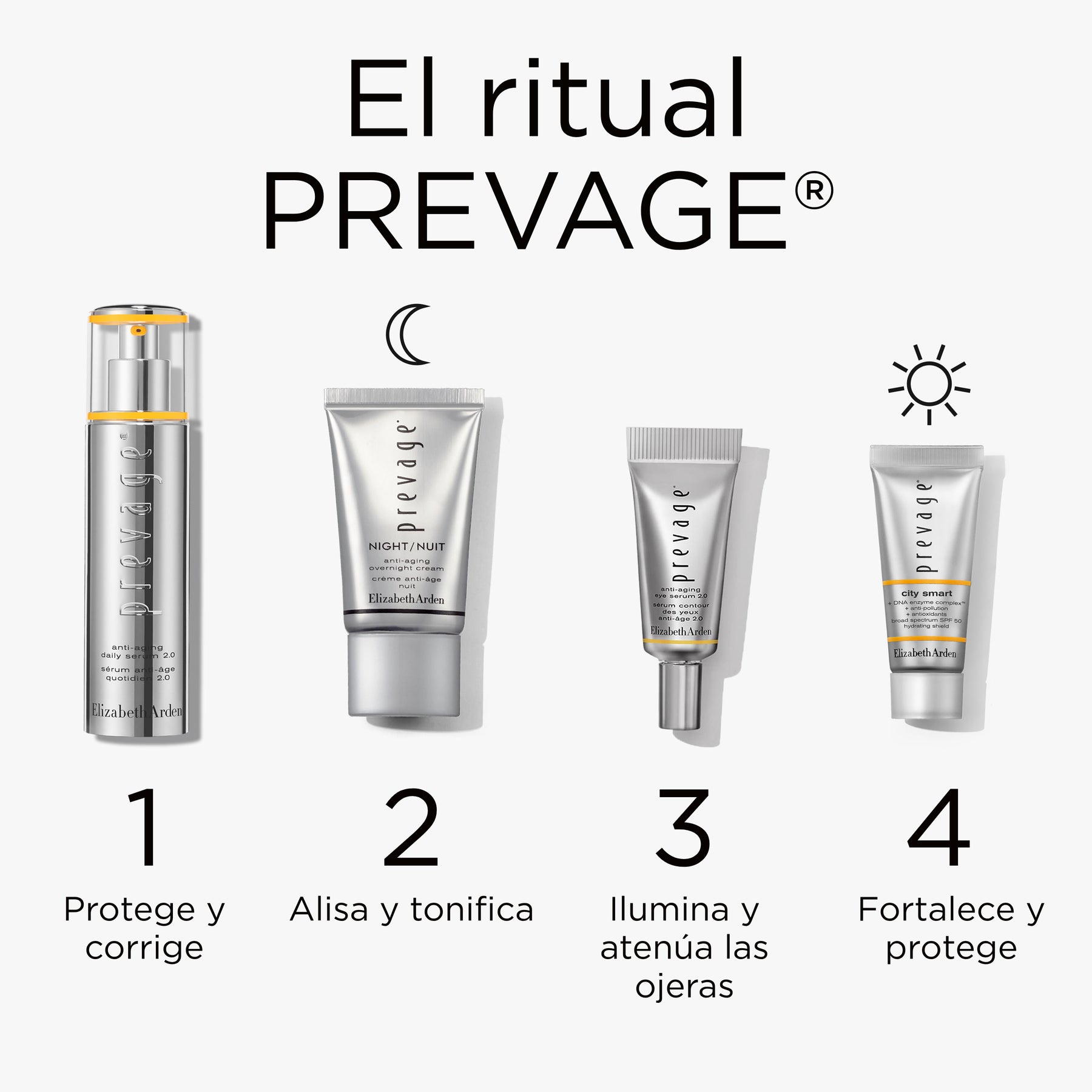 - Prevage City Smart Escudo Hidratante SPF50: Cyclopentasiloxane, Water/Aqua/Eau, Isododecane, Dimethicone, Titanium Dioxide, Zinc Oxide, C12-15 Alkyl Benzoate, Isopropyl Myristate, Pentylene Glycol, Butylene Glycol, Silica Dimethyl Silylate, Caprylyl Methicone, Polyglyceryl-3 Polydimethylsiloxyethyl Dimethicone, Acrylates/Polytrimethylsiloxymethacrylate Copolymer, Glycerin, Aluminum Hydroxide, Stearic Acid, Peg-9 Polydimethylsiloxyethyl Dimethicone, Carnosine, Acrylates/Ethylhexyl Acrylate/Dimethicone Methacrylate Copolymer, Arabidopsis Thaliana Extract, Camellia Sinensis Leaf Extract, Caprylyl Glycol, Disodium Edta, Ergothioneine, Ferulic Acid, Hydrogen Dimethicone, Hydroxydecyl Ubiquinoyl Dipalmitoyl Glycerate, Lecithin, Mica, Micrococcus Lysate, Parfum/Fragrance, Peg/Ppg-18/18 Dimethicone, Plankton Extract, Sodium Pca, Tin Oxide, Tocopheryl Acetate, Triethoxycaprylylsilane, Alpha-Isomethyl Ionone, Linalool, Chlorphenesin, Phenoxyethanol, Iron Oxides (Ci 77491, Ci 77492, Ci 77499), Titanium Dioxide (Ci 77891).