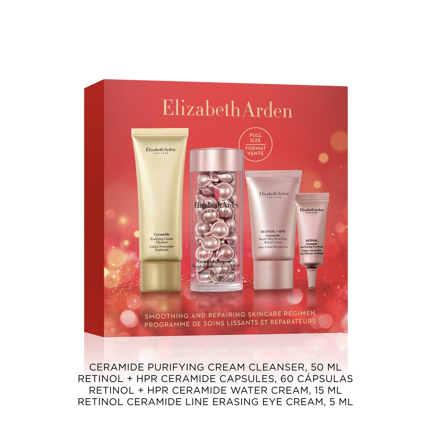 - Ceramide Line Erasing Eye Cream Retinol 5ml: Aqua/Water/Eau, Glycerin, Butylene Glycol, Cyclopentasiloxane, Cetyl Ricinoleate, Dimethicone, Cetearyl Methicone, Glyceryl Stearate, Peg-100 Stearate, Squalane, Acrylates/C10-30 Alkyl Acrylate Crosspolymer, Bht, C30-45 Alkyl Dimethicone, Carbomer, Ceramide Ap, Ceramide Eop, Ceramide Np, Cetearyl Alcohol, Cholesterol, Dimethicone/Vinyl Dimethicone Crosspolymer, Disodium Edta, Fraxinus Excelsior Bark Extract, Hydroxyethyl Acrylate/Sodium Acryloyldimethyl Taurate Copolymer, Isohexadecane, Mica, Niacinamide, Palmitoyl Tetrapeptide-7, Palmitoyl Tripeptide-1, Panthenol, Phytosphingosine, Polymethyl Methacrylate, Polysorbate 20, Polysorbate 60, Retinol, Silanetriol, Sodium Lauroyl Lactylate, Tocopheryl Acetate, Tromethamine, Xanthan Gum, Benzoic Acid, Chlorphenesin, Phenoxyethanol, Sorbic Acid, Iron Oxides (Ci 77491), Titanium Dioxide (Ci 77891)